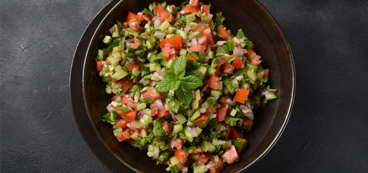 This salad takes inspiration from the classic Middle Eastern salad, which tends to have several variations from country to country. It is very simple, but the flavors are bright, powerful, and highly addictive. Plus, it is naturally rich in water-rich produce items, so eating it contributes to your overall water intake for the day.
